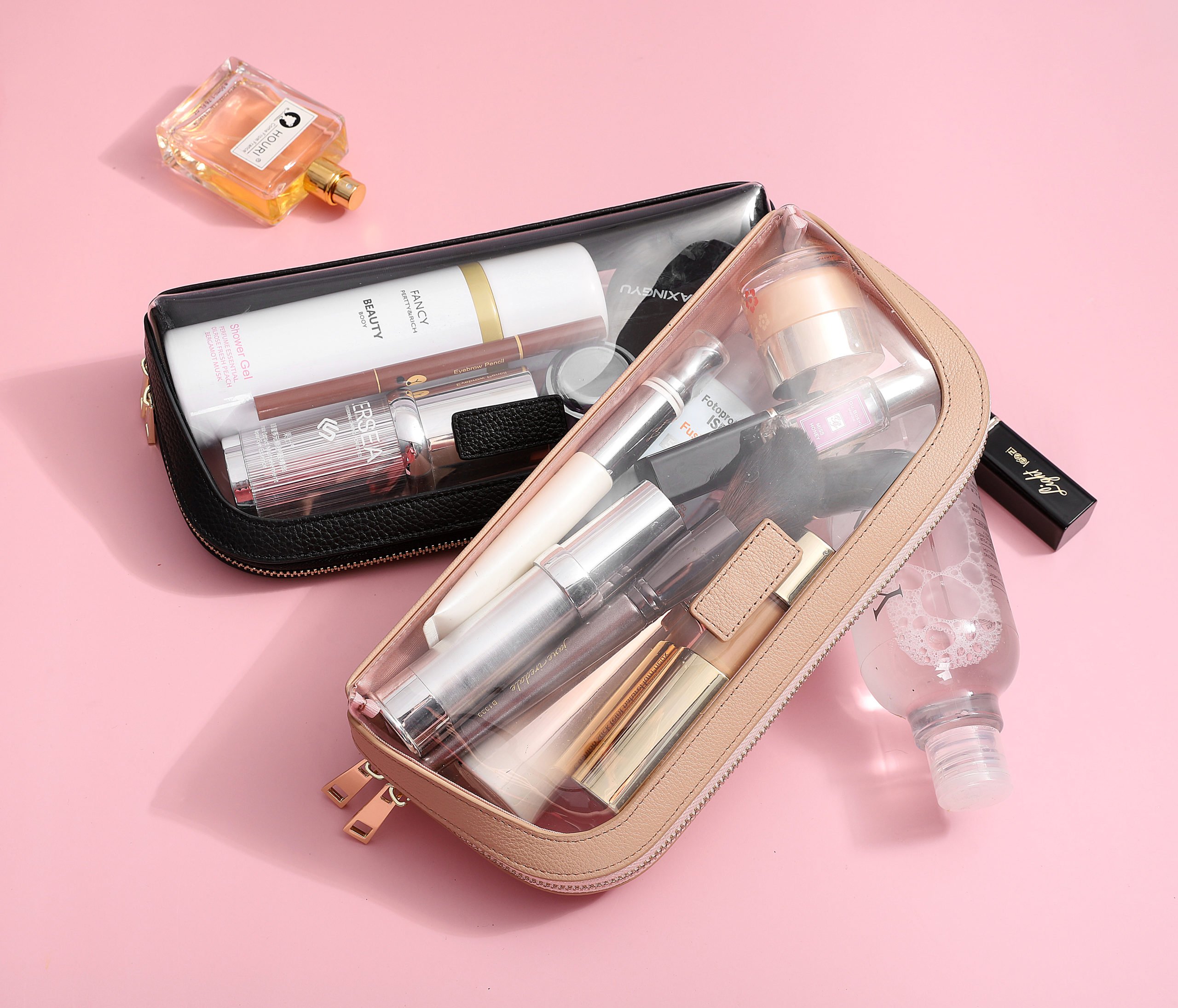 Our Clear Cosmetic Cases are a must have staple in the beauty addicts personal collection! Featuring Grained Leather with clear, PVC panels and dual zippers, this selection of cosmetic cases are available in two sizes with the smaller size perfect to carry around in your handbag and the larger size for storing your complete skincare or make up range!