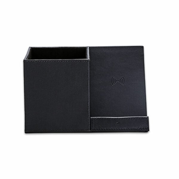 The Personal Print’s Wireless Charging desk organiser is the perfect accessory for your desktop. Crafted from a smooth Nappa Leather, our desk organiser will eliminate the need for wires running across your desk with the handy Wireless Charging dock. Just place your phone on the stand and away it charges- No more messy cables!